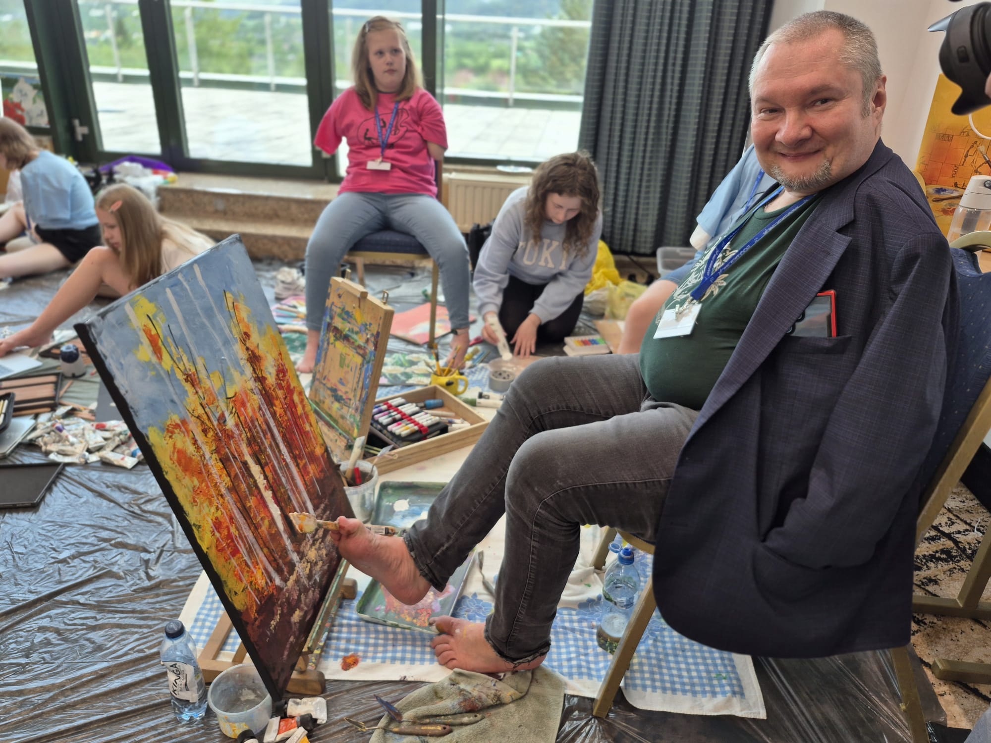 Każdy dzień rozpoczynany był twórczo - od warsztatów malarskich prowadzonych przez Mariusza Drohomireckiego, który zarażał pasją i inspirował do działania każdego z uczestników.
